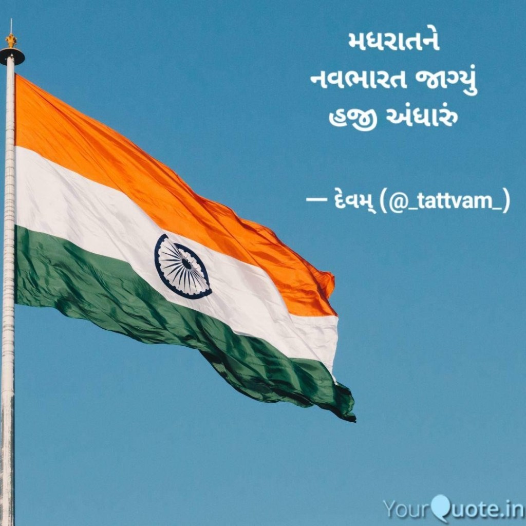 કવિ ખલીલ ધનતેજવીના એક લેખના શીર્ષક “ઘોર અંધારામા પ્રાપ્ત થયેલી આઝાદી હજી અજવાળા શોધે છે. ” પરથી